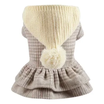 Winter Princess Hoodie Dress for Small Dogs, Warm Knitted Pet Apparel